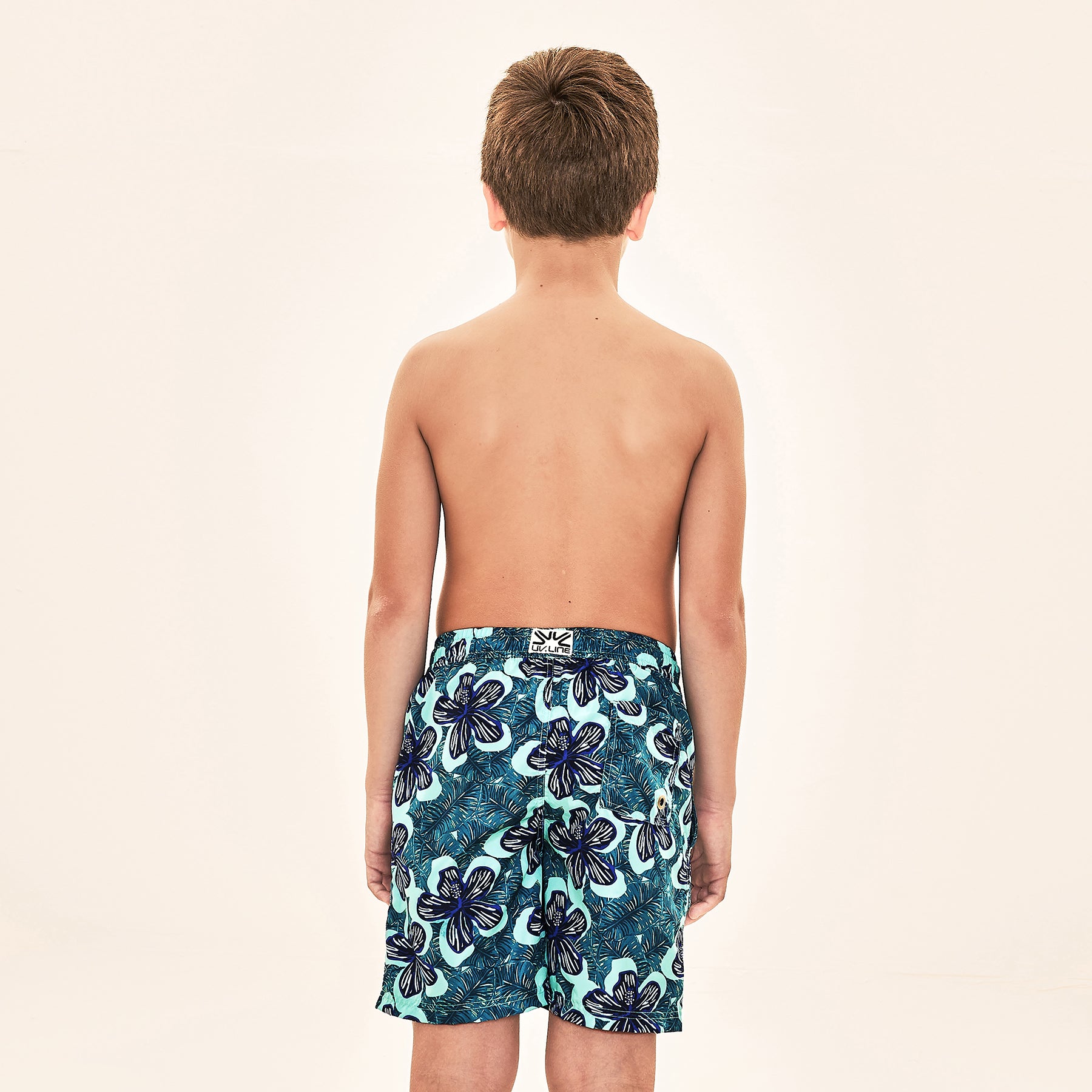 Model Back: Uv Line Maillot De Bain Garçon Shorts Aqua Hibiscus Kids Upf50+